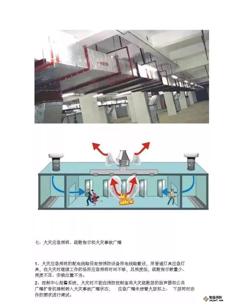 6.商業(yè)營業(yè)廳內店鋪裝修時,廣告牌和門頭下垂高度大于50cm,形成獨立的防煙分區(qū),但未設排煙口。主要是因為店鋪在內部裝修時不經(jīng)統(tǒng)一審核,設計單位不能及時提醒造成的。遇到此類問題,一般要求廣告牌在排煙口附近位置留缺口或增設排煙口。