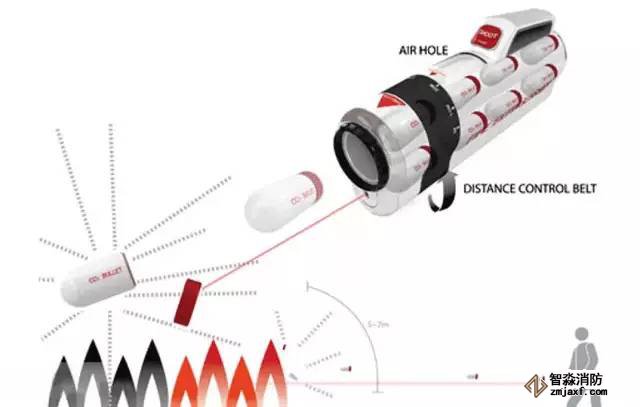 這款滅火器適用于超大型的火災(zāi),將滅火物質(zhì)儲(chǔ)存在了類(lèi)似于膠囊的小容器中,它借鑒了玩具槍的設(shè)計(jì),而每個(gè)滅火的小容器都是“子彈”。一旦火災(zāi)發(fā)生時(shí),人們只需抓起“滅火槍”對(duì)準(zhǔn)火場(chǎng)“開(kāi)火”即可。這樣不僅有利于滅火物質(zhì)的迅速散開(kāi),而且可以在更遠(yuǎn)的距離進(jìn)行滅火,因此安全系數(shù)更高。