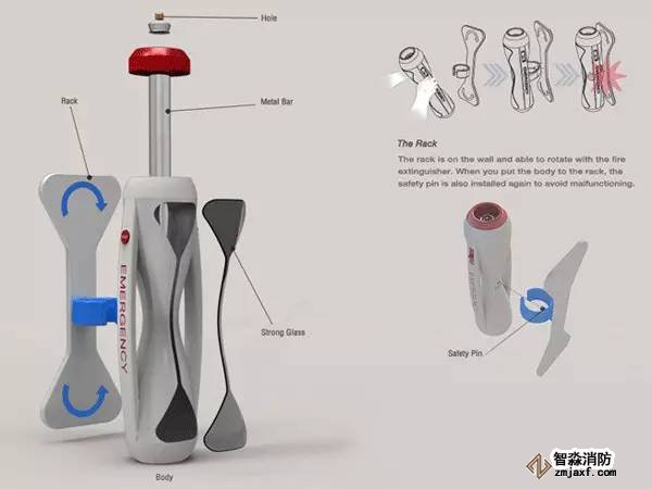 滅火器無(wú)論是在家庭還是在公共場(chǎng)所都是必不可少的物品,由于使用幾率不大,所以很少有人會(huì)注意到它。說(shuō)實(shí)話(huà),很多人見(jiàn)到這個(gè)東西都會(huì)緊張,怕操作錯(cuò)誤,而且現(xiàn)在的滅火器看起來(lái)確實(shí)不那么易懂。最重要的是,打開(kāi)滅火器的那幾秒鐘很可能意味著生與死。那么來(lái)看看設(shè)計(jì)師們是怎么來(lái)創(chuàng)新它的吧。