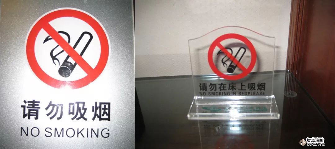 設(shè)置要求:1、公眾聚集場(chǎng)所應(yīng)設(shè)置禁煙標(biāo)牌;2、賓館飯店客房床頭應(yīng)設(shè)置“請(qǐng)勿臥床吸煙”標(biāo)牌。