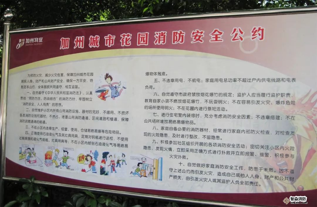 設(shè)置要求:人員密集場(chǎng)所醒目位置和住宅小區(qū)應(yīng)設(shè)置向公眾宣傳消防知識(shí)的宣傳欄。