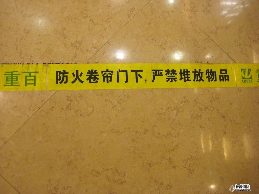 設(shè)置要求:在防火卷簾正下方應(yīng)劃定黃色標(biāo)識(shí)線,并標(biāo)明防火卷簾下方嚴(yán)禁占用提示語。
