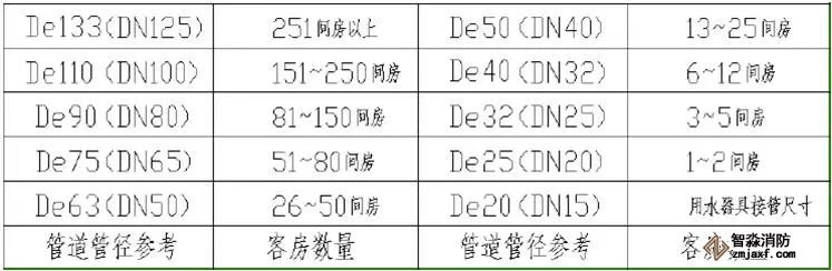 4.冷水管材質(zhì)采用PPR給水管。【 100間房計算】主水管的管徑在 De90左右以上,干管的管徑:De50-75,支管的管徑:De25-50 ??头啃l(wèi)生間給水管徑要求:不小于PPR-De20的管徑。