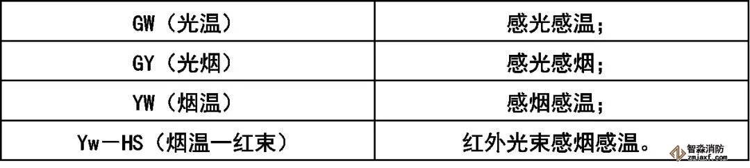 感煙火災(zāi)探測器、感光大災(zāi)探測器、 可燃氣體探測器傳感器特征表示法:
