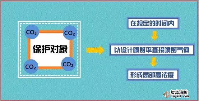 局部應(yīng)用滅火系統(tǒng)指在規(guī)定的時間內(nèi)向保護對象以設(shè)計噴射率直接噴射氣體,在保護對象周圍形成局部高濃度,并持續(xù)一定時間的滅火系統(tǒng)。