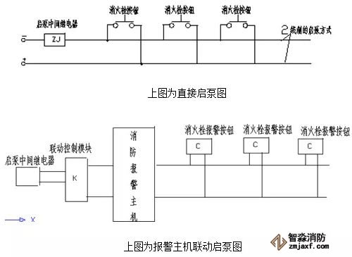 1.火災(zāi)報(bào)警控制器多線盤啟動(dòng)消防泵方式,其工作原理是消防主機(jī)多線按鈕啟動(dòng)多線模塊,模塊動(dòng)作啟動(dòng)水泵。優(yōu)點(diǎn):線路、設(shè)備故障可以監(jiān)視。缺點(diǎn):水泵控制柜必須放置于自動(dòng)擋,消防主機(jī)損壞將無(wú)法啟動(dòng)水泵。