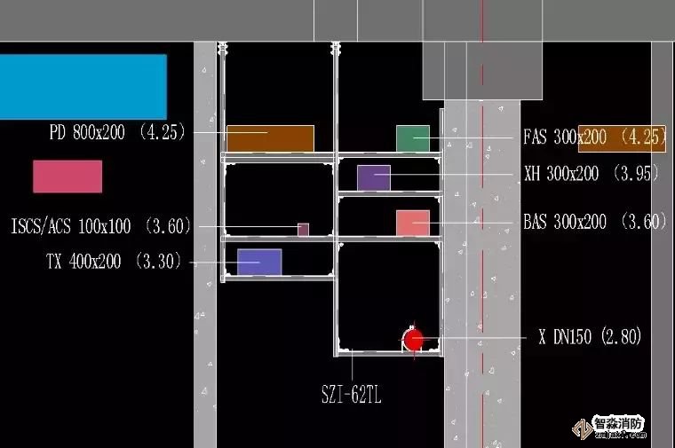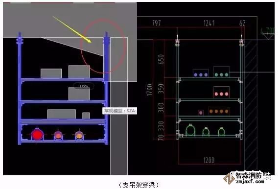 綜合支吊架的定位依據(jù)是廠家深化圖中的平面圖,優(yōu)先定位水平位置,再根據(jù)標高定位垂直方向。