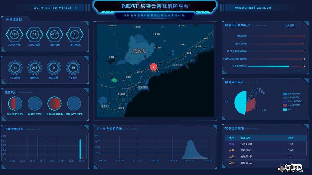 合作期間,尼特采用物聯(lián)網(wǎng)、云計算、大數(shù)據(jù)和移動互聯(lián)網(wǎng)等創(chuàng)新技術,為碧桂園集團搭建了智慧消防云平臺,平臺通過尼特自主研發(fā)的用戶信息傳輸裝置將住宅項目中已安裝的火災自動報警系統(tǒng)的數(shù)據(jù)進行采集,在云端實施統(tǒng)一管理。在保障住宅項目中消防設備、設施正常運行的同時,協(xié)助碧桂園實現(xiàn)了火情處理、消防水源監(jiān)測、電氣火災隱患監(jiān)測等多項管理功能,使消控室的工作人員能夠第一時間發(fā)現(xiàn)火情和安全隱患,確保了住宅項目的消防安全,并掌握了滅火救災的主動權。