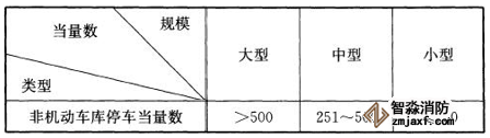 注1:對于非機動車庫來講,主要考慮以自行車作為主要停駛車輛,因此以自行車為標準當量作為劃分依據(jù),其他類型非機動車輛如三輪車、電動自行車、機動輪椅車等停放在庫中時應按相應當量換算系數(shù)進行折算。