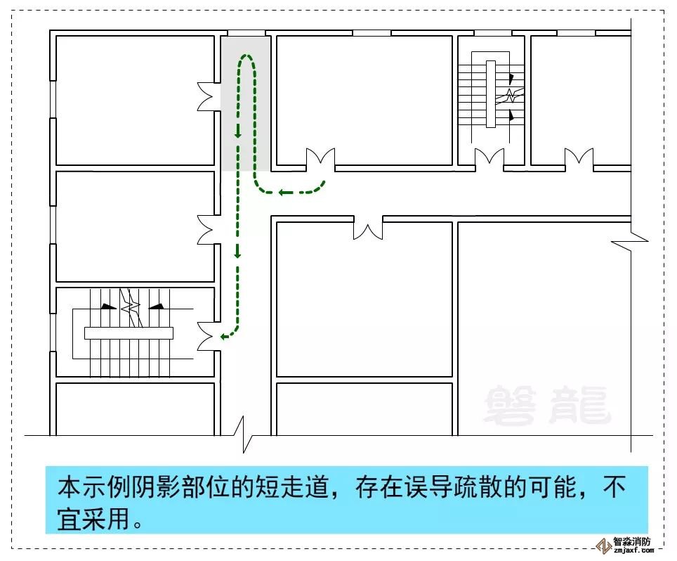 4、沒有安全出口的回形(環(huán)形)疏散路線,不應(yīng)采用。