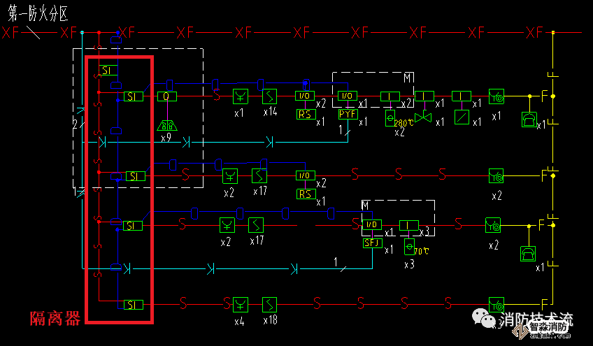 值得注意的是,許多設(shè)計(jì)人員都有一個(gè)疑問(wèn),電源總線需要接隔離器嗎?因國(guó)標(biāo)圖集(上圖)的畫(huà)法電源總線也接入了隔離器,因此在設(shè)計(jì)時(shí)多數(shù)都按圖集畫(huà)法設(shè)計(jì),有些設(shè)備廠家為了迎合圖集的做法也生產(chǎn)有24v電源的隔離器,但實(shí)際應(yīng)用中使用效果并不佳,容易誤動(dòng)作。
