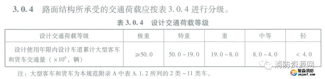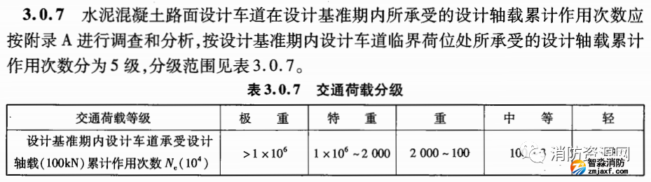本文觀點:對于建筑物的自用消防車道來說,消防車的通行概率很低,以水泥混凝土路面和瀝青路面為例,即使最低標準的輕交通或中等交通路面,也可滿足消防車的最高承載力要求(10kg/cm²),且這兩個路面等級的建造成本相差不大。依此,實無必要糾結(jié)消防車道及登高場地的承載力問題,可統(tǒng)一按不小于10kg/cm²處置。