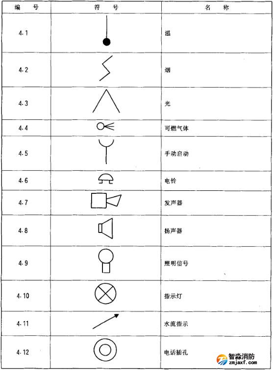 本標準規(guī)定了表示火災(zāi)報警設(shè)備的基本符號、輔助符號、附加文字符號和獨立圖形符號。