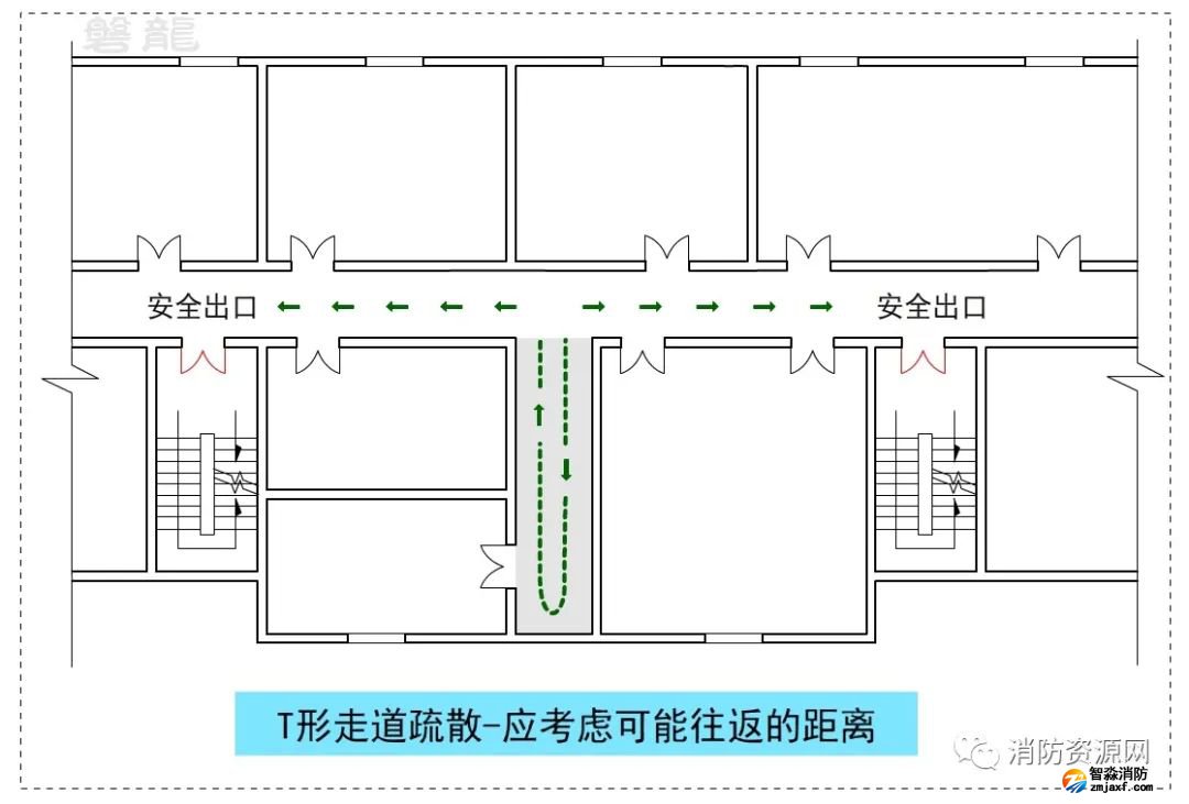 四、關(guān)于T形走道的疏散方案及疏散距離計(jì)算,參專題: T形走道-宜與忌!疏散距離計(jì)算規(guī)則!