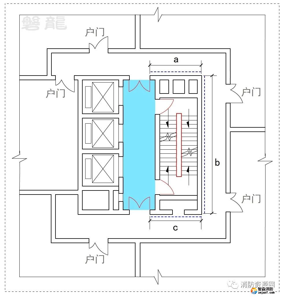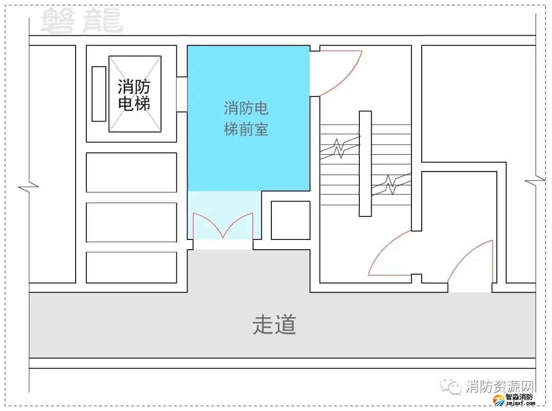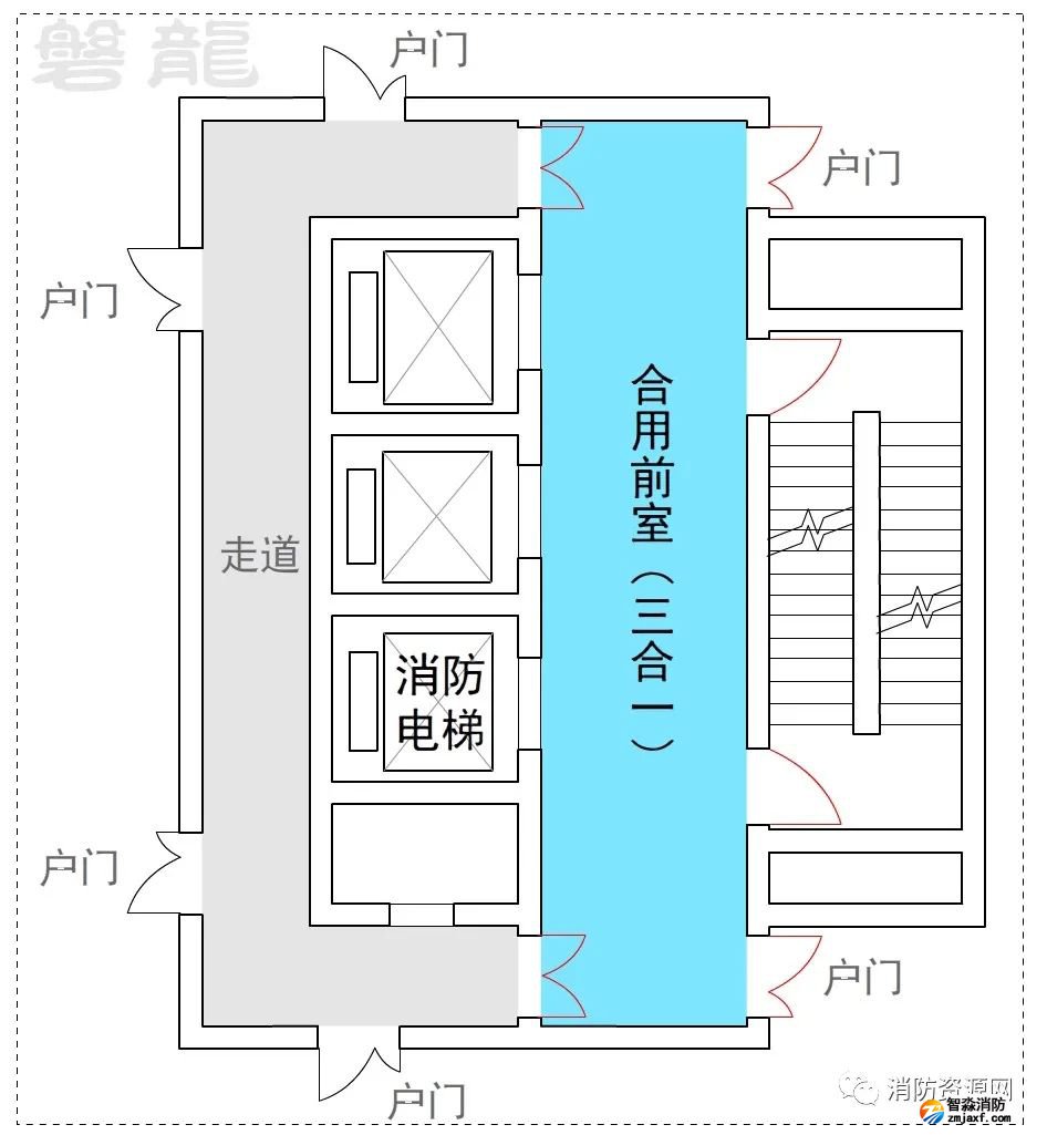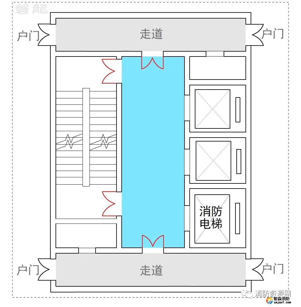 三、公共建筑人員較為繁雜,穿套前室會(huì)直接影響消防電梯前室的封閉性能,且人員不一定熟悉現(xiàn)場(chǎng)環(huán)境,封閉的消防電梯前室門可能導(dǎo)致疏散盲區(qū),因此,公共建筑不應(yīng)許可穿套消防電梯前室。