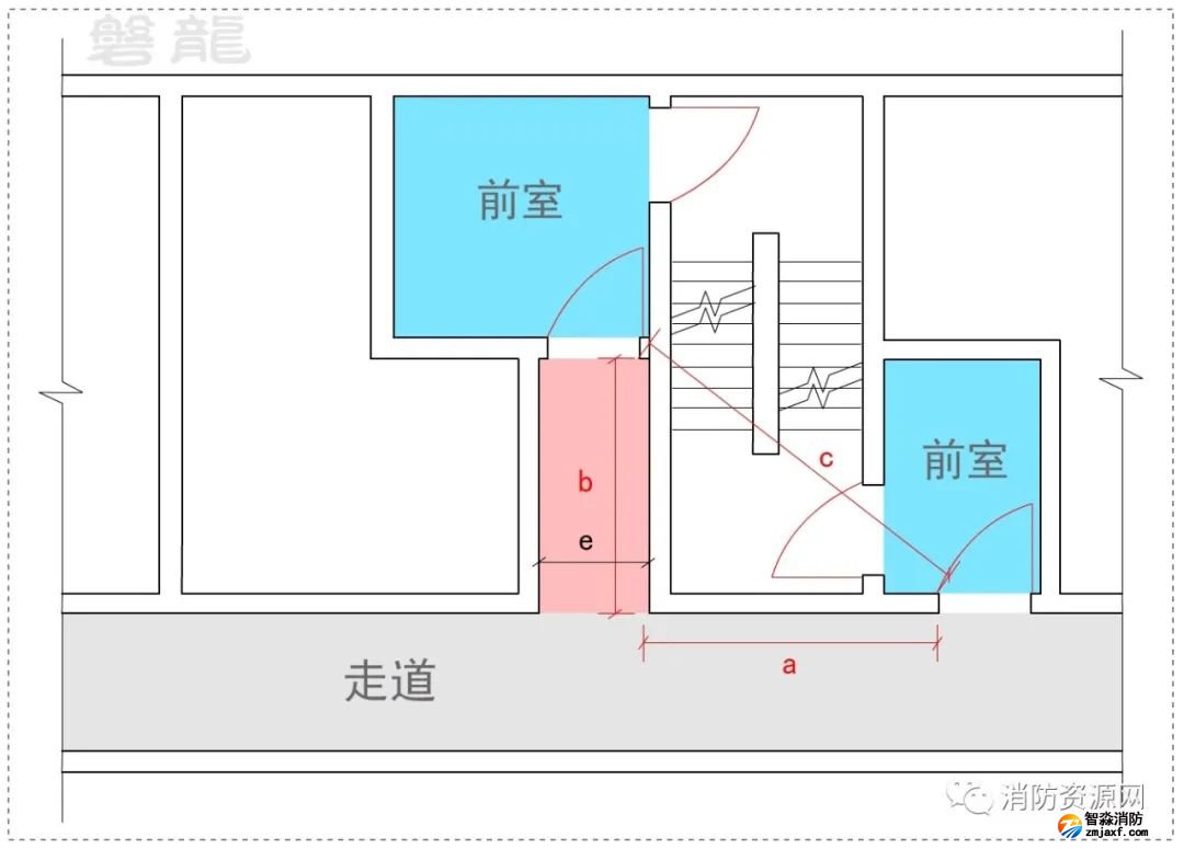 第六章 共用前室應(yīng)嚴(yán)格控制疏散門至疏散樓梯間入口的距離