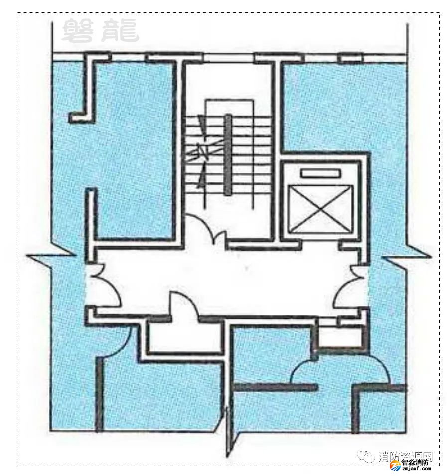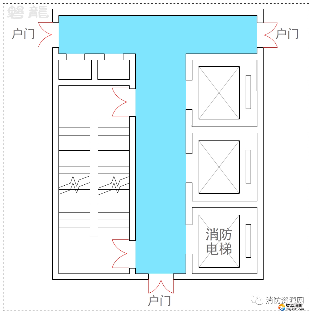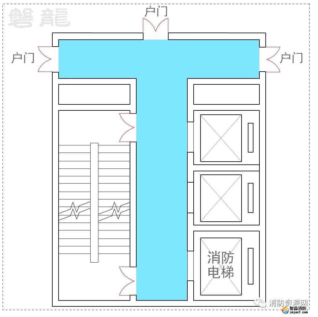 二、T形走道也稱為丁字形走道(示例3),是消防安全疏散設(shè)計(jì)中不可回避的形式。