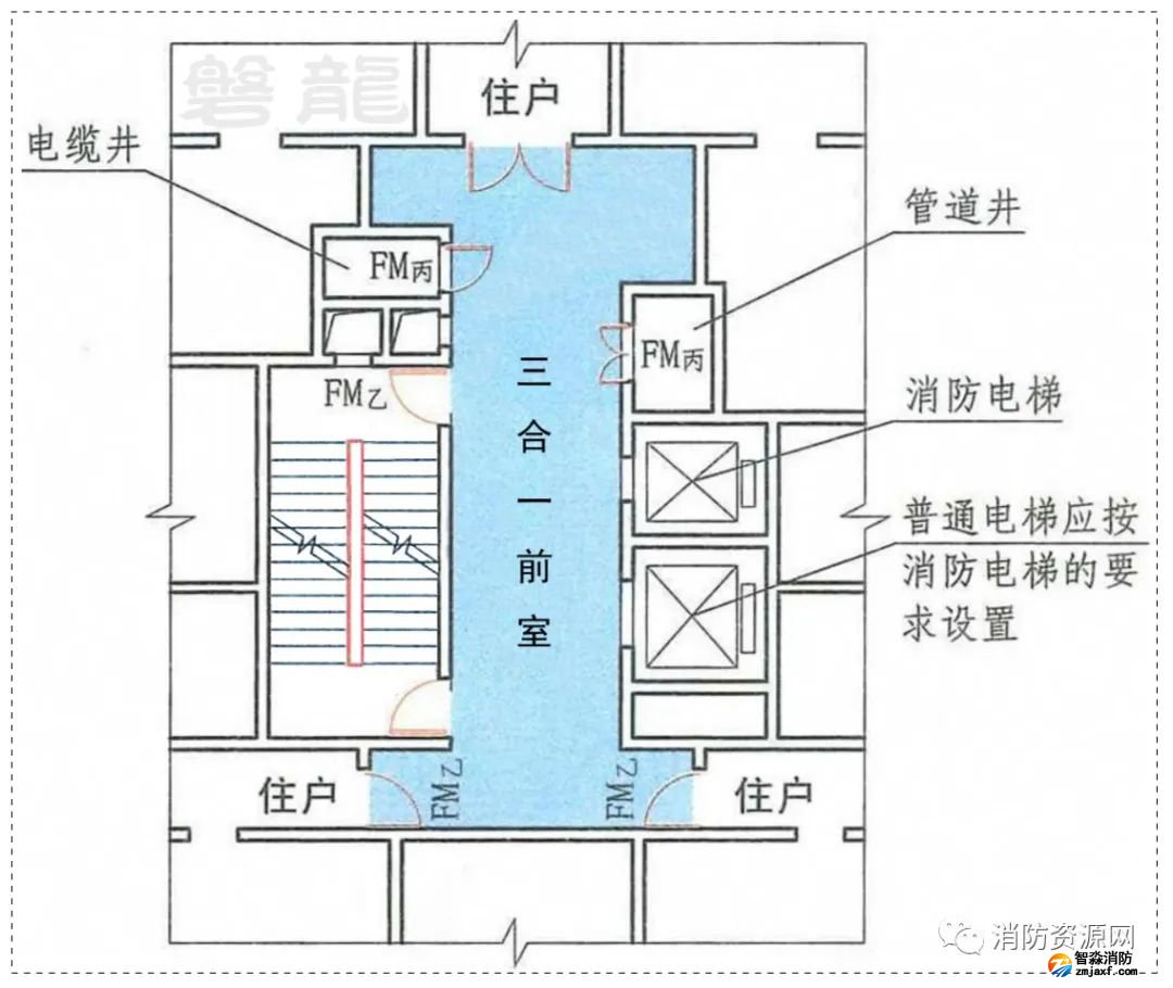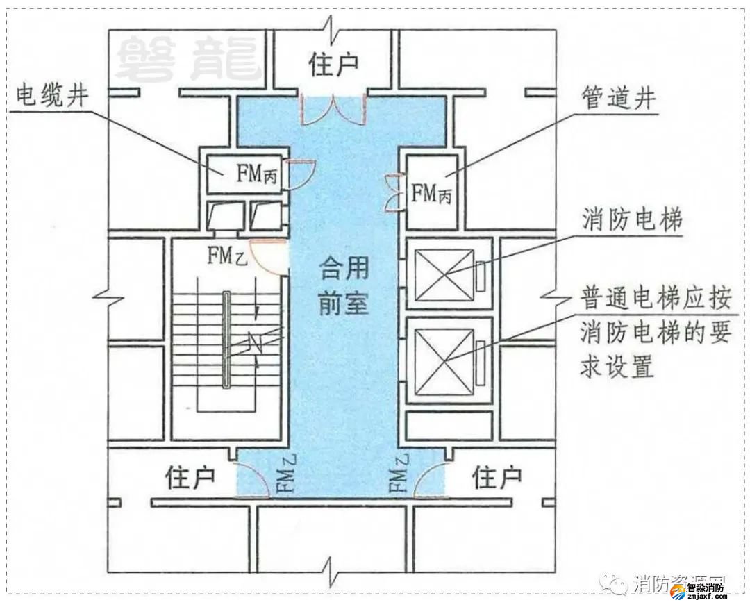 住宅建筑以家庭為單位,人員較少,且基本熟悉現(xiàn)場(chǎng)環(huán)境,考慮實(shí)際功能需要,允許客貨電梯設(shè)置在消防電梯前室,相關(guān)安全保障措施,參專題:客貨電梯&消防電梯-共用前室的原則及要求!