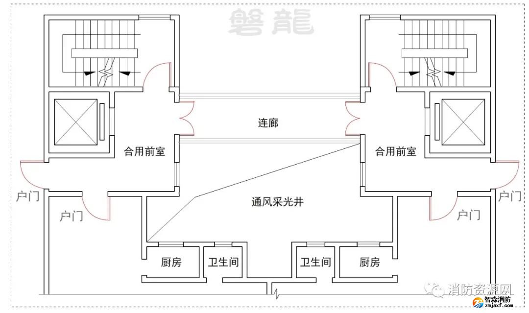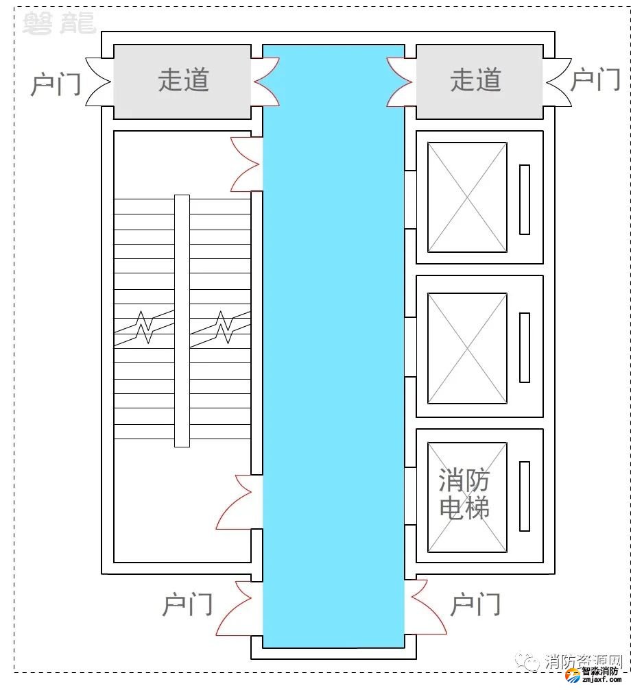 一、住宅建筑人員較少且熟悉現(xiàn)場(chǎng)疏散環(huán)境,因此,在住宅建筑中,為了解決疏散走道雙向疏散的問(wèn)題,疏散走道通過(guò)獨(dú)立的消防電梯前室(不能是合用前室)連通,雖然是一種不合適的方式,但通常被允許(有爭(zhēng)議)。
