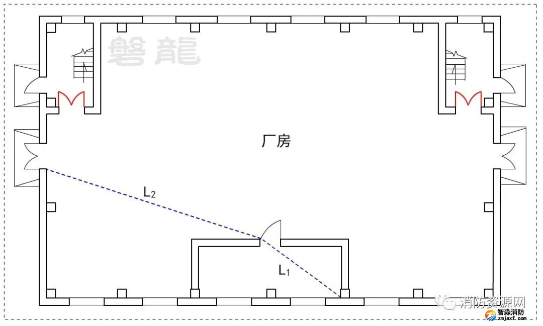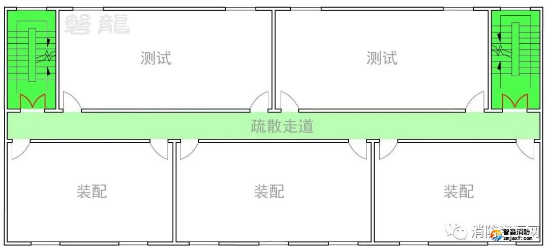 1、在圖示6的廠房建筑中,同樣應(yīng)采用“房間”→“疏散走道”→“安全出口”的基本設(shè)置原則,確保風(fēng)險(xiǎn)逐級(jí)降低,廠房倉庫疏散走道兩側(cè)的隔墻,其燃燒性能和耐火等級(jí),應(yīng)符合規(guī)范要求。