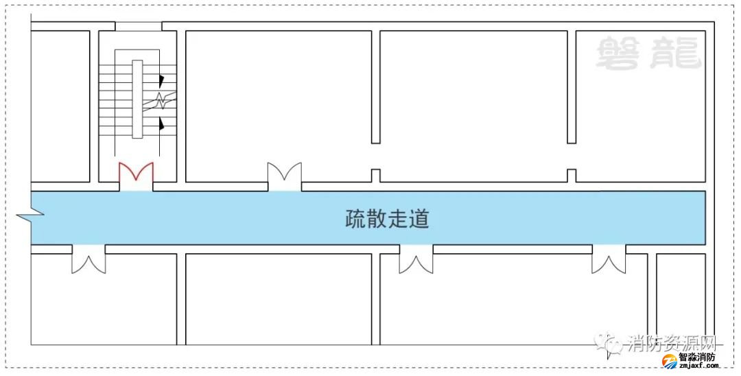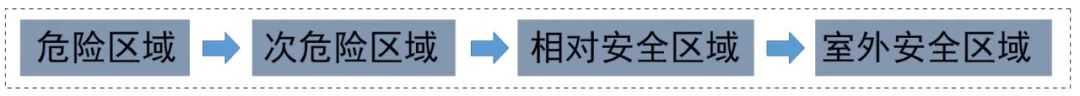 三、人員疏散過程中,從危險(xiǎn)區(qū)域(房間等)應(yīng)進(jìn)入次危險(xiǎn)區(qū)域(疏散走道等)或相對(duì)安全區(qū)域、安全區(qū)域,不應(yīng)通過其他危險(xiǎn)區(qū)域疏散,示例: