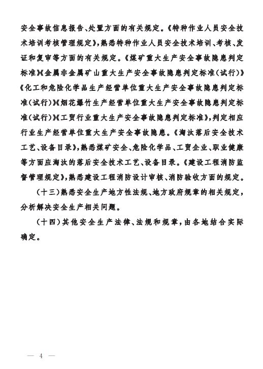 為做好中級、初級注冊安全工程師職業(yè)資格考試工作,按照《注冊安全工程師職業(yè)資格制度規(guī)定》《注冊安全工程師職業(yè)資格考試實施辦法》(應(yīng)急〔2019〕8號)有關(guān)要求,應(yīng)急管理部組織編制了《中級注冊安全工程師職業(yè)資格考試大綱》《初級注冊安全工程師職業(yè)資格考試大綱》,經(jīng)商住房和城鄉(xiāng)建設(shè)部、交通運輸部同意,人力資源社會保障部審定,現(xiàn)予以印發(fā)施行。