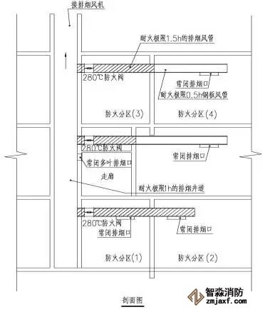 2.走道的機械排煙系統(tǒng)宜豎向設(shè)置;房間的機械排煙系統(tǒng)宜按防煙分區(qū)設(shè)置。