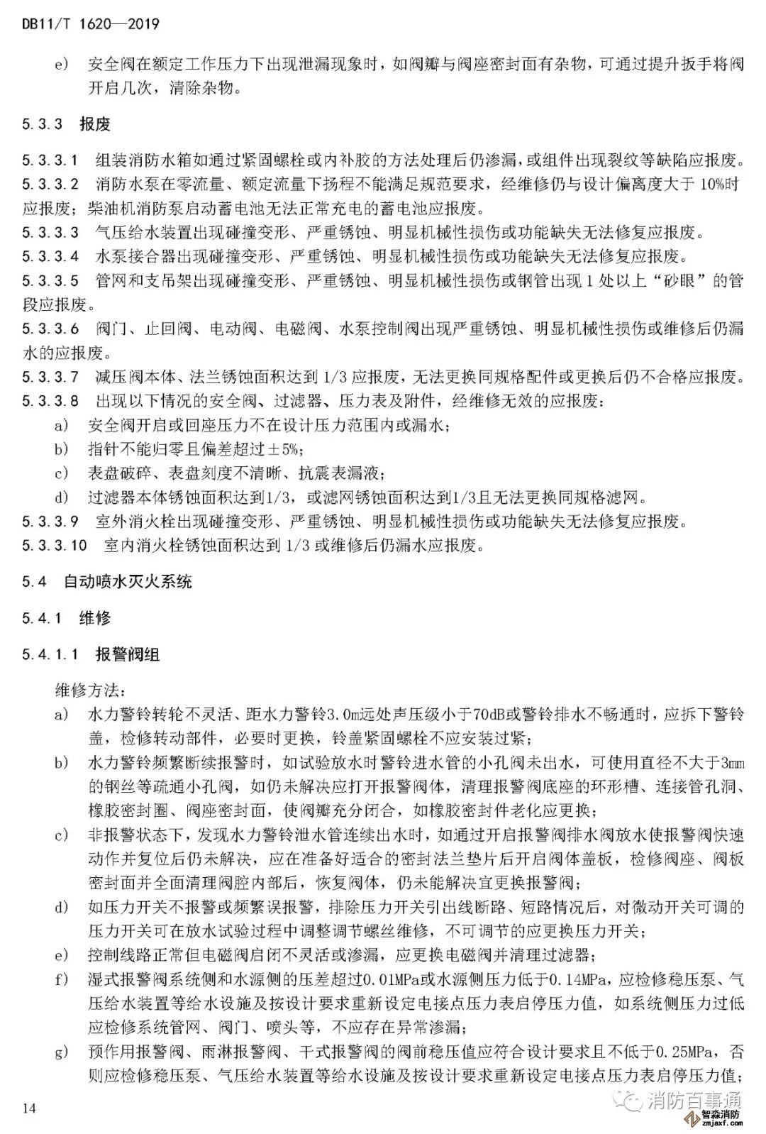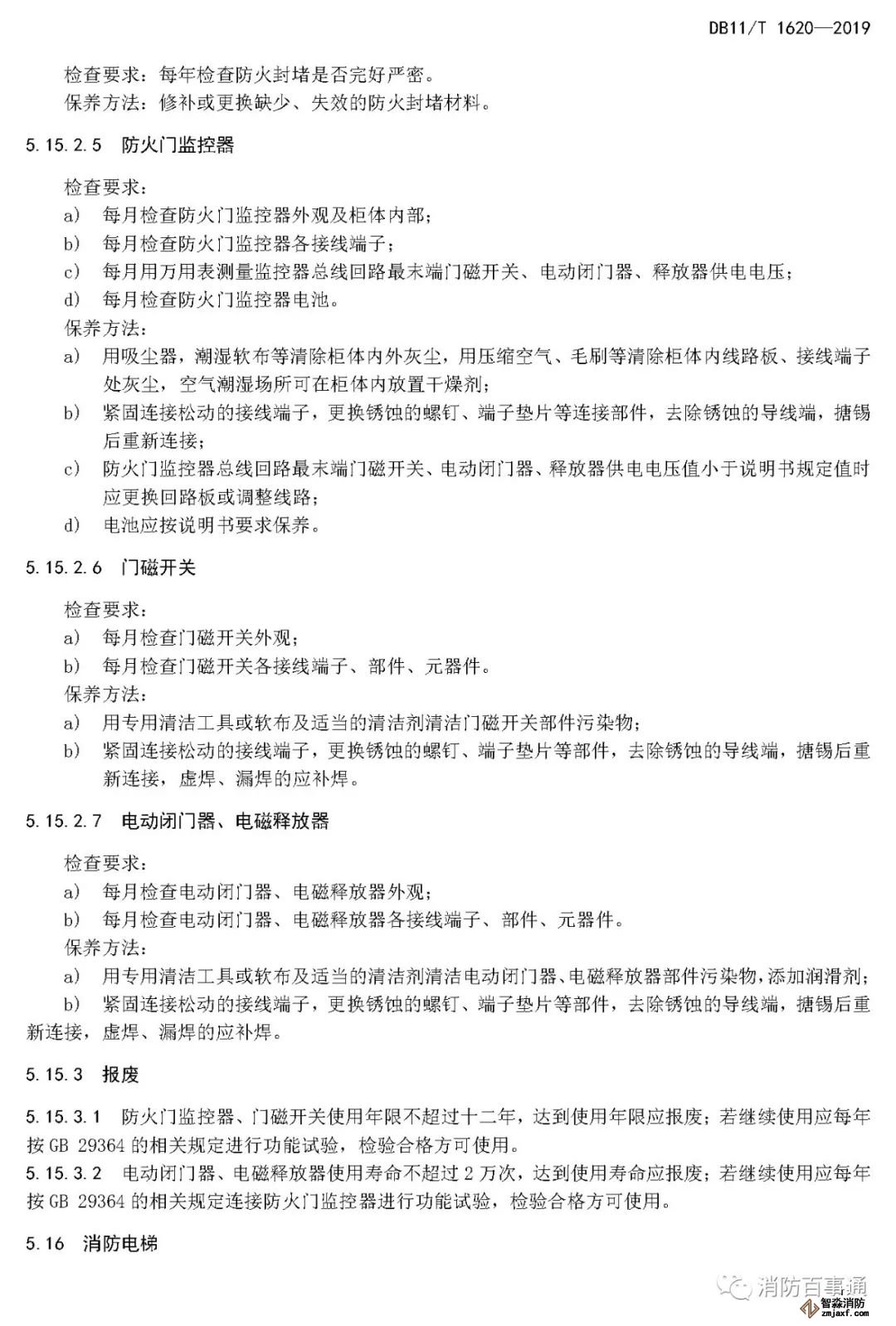北京市2019年7月1日實(shí)施的DB11/T1620—2019《建筑消防設(shè)施維修保養(yǎng)規(guī)程》,很清楚的規(guī)定了一些消防設(shè)備/器材的具體報(bào)廢年限。
