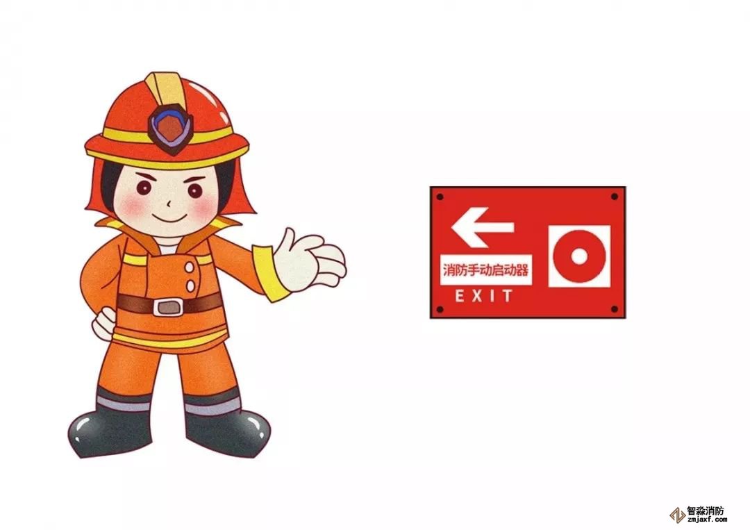 手動火災(zāi)報警按鈕和固定滅火系統(tǒng)的手動啟動器等裝置附近必須設(shè)置“消防手動啟動器”標(biāo)志。萬一發(fā)生災(zāi)情,大家可立即尋找消防手動啟動器。