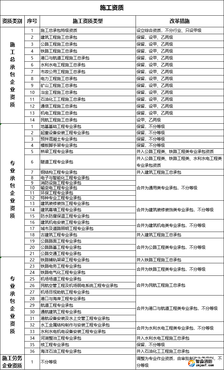2014年11月,住建部將專業(yè)承包資質(zhì)由60個壓縮至36個。