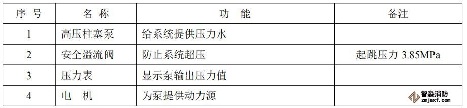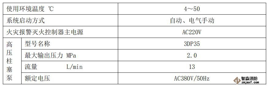 表1-2泵式細(xì)水霧自動滅火系統(tǒng)主要參數(shù)