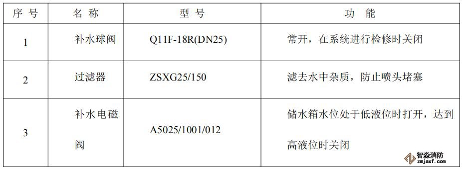 水箱自帶補(bǔ)水電磁閥、連桿浮球液位儀,補(bǔ)水電磁閥由電氣控制柜控制,通過它能自動保證水箱中的水位適中,不需要任何人為操作。當(dāng)水箱水位低于低液位時,連桿浮球液位儀輸出相關(guān)信號給電氣控制柜,由電氣控制柜給出DC24V開閥信號,補(bǔ)水電磁閥開啟,給水箱注水;當(dāng)補(bǔ)水到水箱水位高于高液位時,連桿浮球液位儀輸出相關(guān)信號給電氣控制柜,由電氣控制柜斷開DC24V開閥信號,補(bǔ)水電磁閥關(guān)閉,補(bǔ)水自動完成。